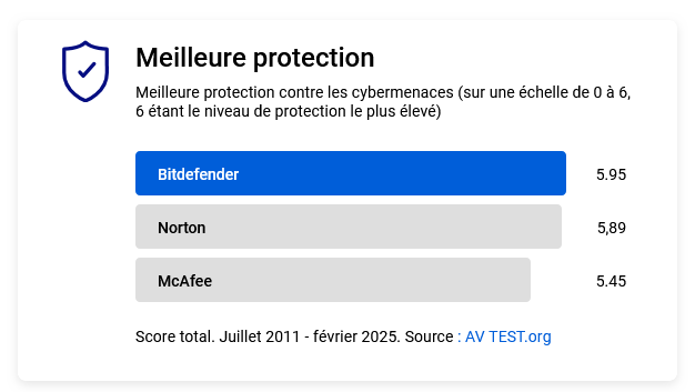 - Les technologies antivirus BITDEFENDER sont régulièrement classées en tête par les organismes de tests indépendants.
