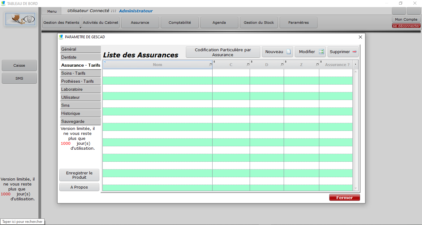 Le logiciel GESCAD (Gestion de Cabinet Dentaire), dont le but est de répondre correctement à ces exigences, a été développé en respectant deux contraintes majeures : efficacité et simplicité.